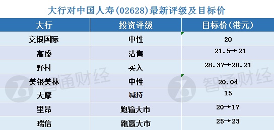 二、大行对中国人寿(02628)最新投资评级及目标价