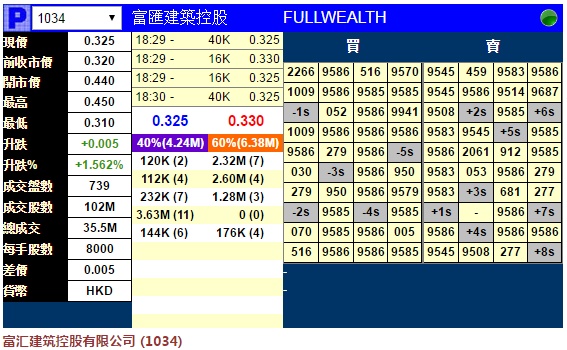 智通财经APP获悉,富汇建筑控股(01034)将于明日(10月30日)在港股上市。上市前夕,据辉立交易场资料显示,其开盘报0.44港元,较招股价0.32港元高37.5%,盘中最高价为0.45港元,最低达0.31港元,截至收盘,报0.325港元,涨1.56%,每手8000股,不计手续费,每手赚40港元。