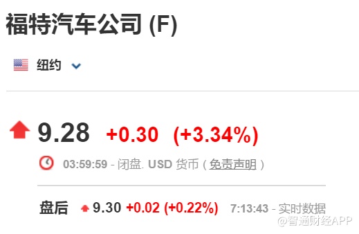 该行将福特汽车股票评级从“中性”上调至“买入”,并把未来12个月的目标股价从9美元上调至12美元。这目标股价较该公司上周五的收盘价有33.6%的上升空间。受此推动,福特股价周一收涨3.34%,报9.28美元。
