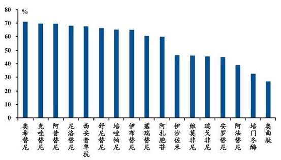 数据显示,第二批谈判成功的36个品种在PDB数据库中有销售记录的有32个,2018年二季度的销量同比增速达到100%以上的有26个,价格的下降带动了量的高速增长。