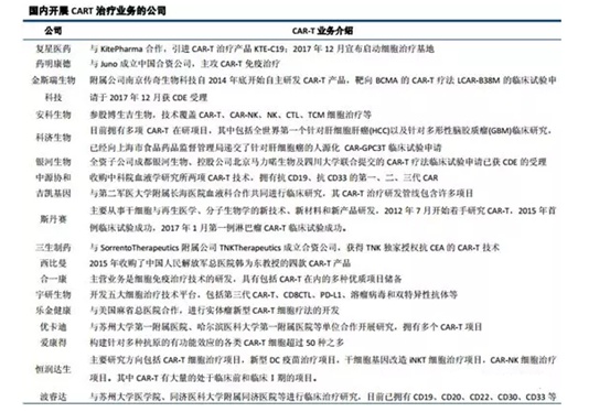 复星医药则与KitePharma公司合作,引进CAR-T治疗产品KTE-C19,在中国大陆、香港及澳门开拓癌症T细胞免疫疗法市场。