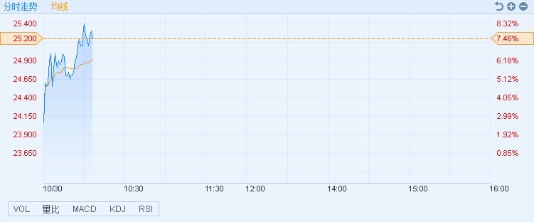 智通财经APP获悉,白云山(00874)前三季度股东应占净利同比增131.5%至34.39亿元人民币,业绩超预期,早盘股价拉升,截至10时05分,涨7.46%,报价25.2港元,成交额3678.59万。