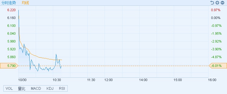 智通财经APP获悉,金风科技(02208)第三季度股东应占净利同比降23.57%,业绩逊预期,股价续挫。截至10时44分,跌6.01%,报价5.79港元,成交额2564.25万。