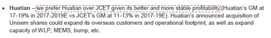 有意思的是,麦格理还进行了对比,认为从盈利能力和增长潜能的角度出发,华天科技(002185.SZ)要比长电科技(JCET/600584.SH)更优质。