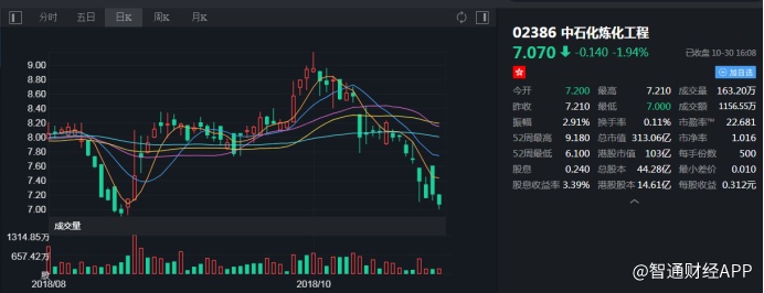 截至今日收盘,中石化炼化工程(02386)报7.07港元,跌1.94%。