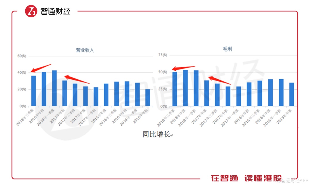 智通财经APP观察到,作为主业务的线上收入,在今年三个季度收入同比增长率分别为13%,12%及11%,而2017年前三个季度同比增长率为18%,22%及17%,可以看到同比增长率减小,也就是说增幅放缓了。