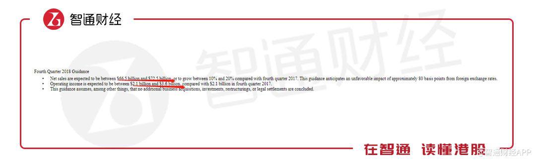 很奇怪,2018年同比增长率明明整体比2017年都要高,只因为同比增长率的幅度下降,市场情绪就不稳定了。因为按照预期,净销售额应该在737.9亿美元,营业利润在38.6亿美元。
