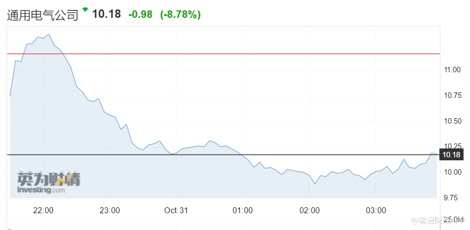 昨日公布逊于市场预期的财报后,通用电气周二盘中一度跌破10美元,跌幅超11%,为2009年4月1日以来首次跌破这一关口。尽管最终收于10美元上方,但亦是大跌8.78%,创九年半以来新低。过去三个月,其股价已经累跌25%以上,一年来跌约50%。