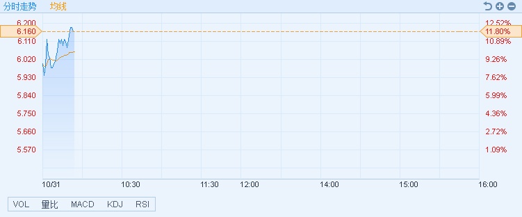智通财经APP获悉,前三季度归母净利同比增42.9%至40.14亿元人民币,龙源电力(00916)业绩超预期,股价大涨,截至9时53分,涨11.8%,报价6.16港元,成交额3985.06万。
