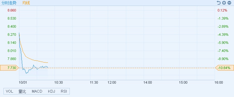 智通财经APP获悉,前三季度净利润同比减25.4%至131.9亿元人民币,中国财险(02328)早盘遭重挫,截至10时17分,跌10.64%,报价7.73港元,成交额3.45亿。