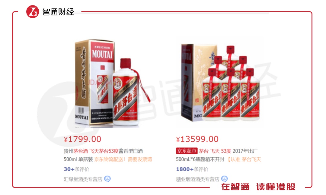 2017年末茅台酒提价后,飞天茅台酒的出厂价约为969元,而目前终端零售价大多都在1700元以上,例如,53度飞天茅台在京东上卖1799元,在天猫上卖1980元,经销商的利润极其丰厚。因此,经销商一直都积极打款,生怕进不到货。
