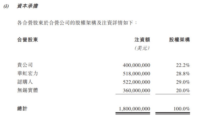 基于寻根究底的精神,我终在港交所网站中,从华虹在2018年1月30日披露的认购、合营和增资文件里找到此一资讯。如下图所示,华虹半导体和华虹宏力各占华虹无钖22.2%和28.2%股权,国家集成电路基金占29%,无锡锡虹联占20%。而华虹宏力是华虹半导体的全资子公司,换言之,华虹半导体直接和间接持有华虹无锡共51%股权,华虹无锡仍是它的子公司。所以往后无论华虹无锡的销售、盈利、开支、资产和债务等均会合并在华虹半导体的财务报表中。