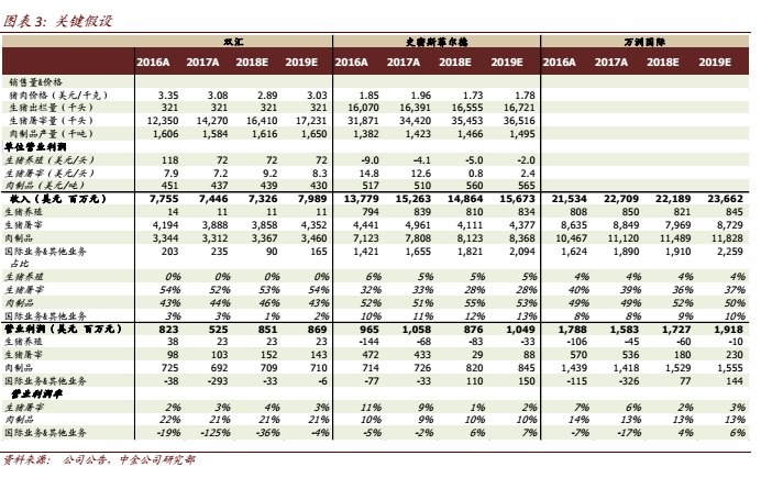 3Q中国营业利润同比未增受高基数、人民币兑美元汇率贬值及非洲猪瘟病轻微影响,但预计4Q将恢复增长,且19年增长势头将会延续。预计猪肉端成本优势可延续至4Q18,4Q17低盈利基数(吨均盈利2860元)可使 4Q18中国区业务盈利同比恢复增长。