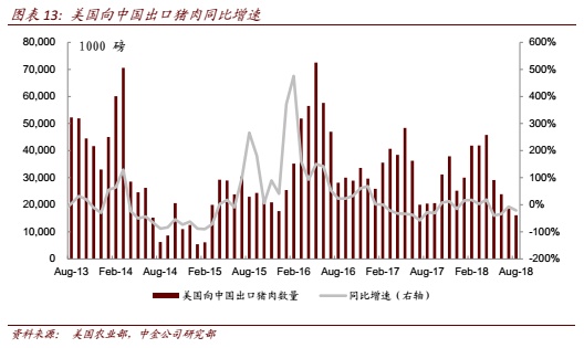 美国养殖和屠宰业务盈利预计4Q环比改善,且屠宰和养殖盈利低基数有利于19年盈利增长势头回归。自8月底以来随北美自由贸易区谈判前景明朗,特别是与墨西哥市场贸易壁垒的疏通(美国火腿肉重要出口市场),万洲业务屠宰盈利已从7-8月亏损转为9月盈利,这也将扭转今年前8个月猪肉价格同比跌幅始终快于猪价同比跌幅的趋势(受新增产能和贸易战带来心理阴影所致),使得4Q18屠宰业务盈利有望持续,从而缩小 4Q18 屠宰业务盈利同比下滑幅度;同时从目前上游业务对冲结果来看,4Q18养殖盈利有望较3Q18减亏4-5美元/头,而3Q18大放异彩的下游肉制品业务盈利同比增长趋势(+22.7%)将会在4Q18持续。