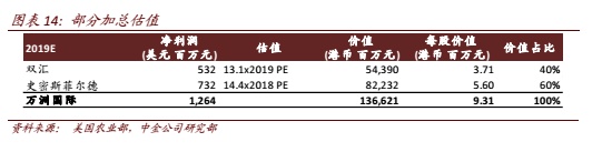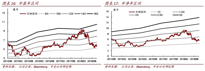 公司当前股价对应18/19年9.5/8.4倍P/E。因已接近18年底,我们将公司目标价从原来18年底HK$9.90延展至19年底HK$9.31(下调6%,对应2019年13.9倍P/E),我们继续依赖分部加总法得到公司目标股价,并已考虑盈利预测小幅下调及来自中国和海外市场可比公司19年平均市盈率水平近期变化。新目标股价离当前股价仍有66%上行空间,我们维持万洲推荐评级,并相信3Q18盈利短暂下行压力很快可以扭转,公司长期稳定增长前景不变,当前估值明显低于中外可比公司均值,且股息收益率预期维持近5%高位(43%派息率预期下),显示其投资价值。