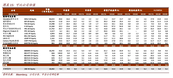 展望19年,猪肉成本虽预期小幅攀升,但预计其他原料成本基本保持稳定,且公司继续精进产品组合努力不变,并考虑产品提价,因此至少预期占中国业务盈利大头的肉制品业务利润率同比有望延续升势。人民币兑美元汇率贬值也使三季度公司盈利减少1400万美元(约占当季报表盈利7%),相信该趋势仍将在短期内(包括4Q18)继续负面影响中国业务并表后的盈利增幅。