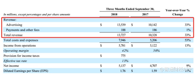 众所周知,Facebook目前的主营业务有三大块:广告收入、第三方应用分成以及游戏分成。从公司刚发布的Q3财报可以直观看出,广告依旧是其核心收入来源,总共有135.39亿美元,占其总营收的98.6%。
