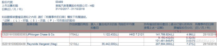 智通财经APP获悉,根据联交所资料显示,摩根大通于10月25日减持东风集团股份(00489)112万股,每股作价7.21港元,总值807.5万港元,最新持股量降至4.96%。