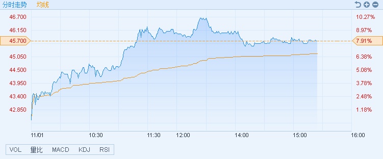 智通财经APP获悉,阅文集团(00772)于2018年10月31日,完成收购新丽传媒100%股权,股价造好。截至15时24分,涨7.91%,报价45.7港元,成交额1.08亿。