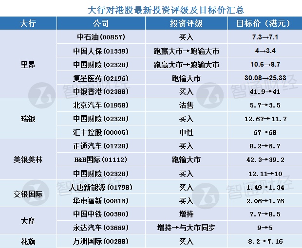 二、大行对渣打集团(02888)最新投资评级及目标价汇总
