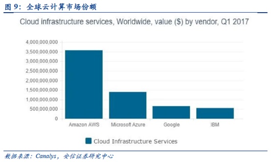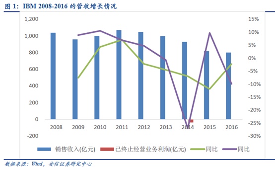 2016年是IBM向云服务全力进击的一年。这一年,公司实现了799 亿美元的营业收入,云计算产生了137 亿美元的收入,同比增长35%。尽管IBM的营收仍在下滑,但其股价在下跌3年后重启了上涨趋势。