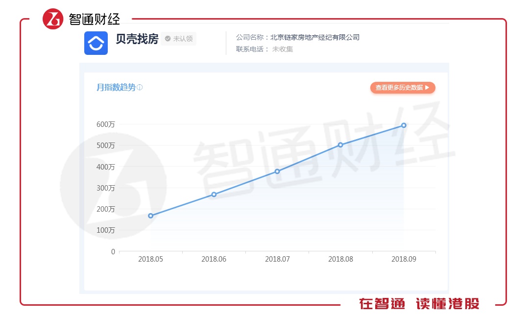 贝壳找房APP也确实生猛,据第三方机构易观千帆数据显示,截至2018年9月时,贝壳找房APP的月活人数已接近600万人。但有意思的是,安居客的月活人数仍稳定增长,截至今年9月份时,已超过1500万。若贝壳找房仍以目前的速度增长,那么年底超过安居客的目标是不能实现了,且贝壳找房中的部分流量是由链家中转移过去的,剔除这部分流量,那么贝壳找房对于其他经纪品牌的“收编”速度还要有所折扣。