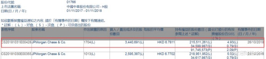 智通财经APP获悉,根据联交所资料显示,摩根大通于10月26日增持中国中车(01766)344万股,每股作价6.78港元,总值2332.32万港元,最新持股量降至4.93%。