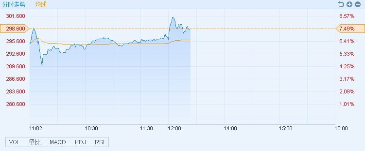 港股异动︱午后盘中突破300港元关口 腾讯(00700)现涨7.42%