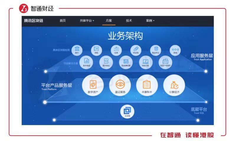 腾讯的区块链技术是打造企业级基础服务平台(BaaS开放平台),以区块链作为底层平台,主要应用包括平台服务层和应用服务层。平台服务层,应用于四个地方,分别是数字资产、鉴证证明、共享账本和分享经济,应用服务层,应用于银行、保险、证券以及供应链等行业。目前腾讯区块链主要应用在平台服务层。