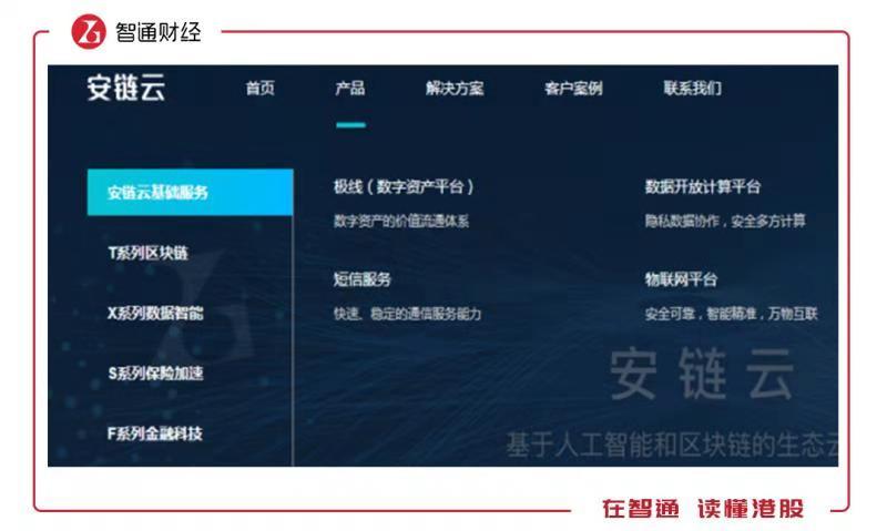 众安在线的区块链为安链云平台,该平台为众安于2017年5月份发布的基于区块链和人工智能等技术的云服务产品。安链云的产品包括基础服务,包括数字资产平台和物联网平台等、T系列区块链,主要为智能合约、X系列数据智能,包括舆情和智汇投研等、S系列保险加速,主要为保险经纪,以及F系列金融科技,包括资金及信贷资产的应用。