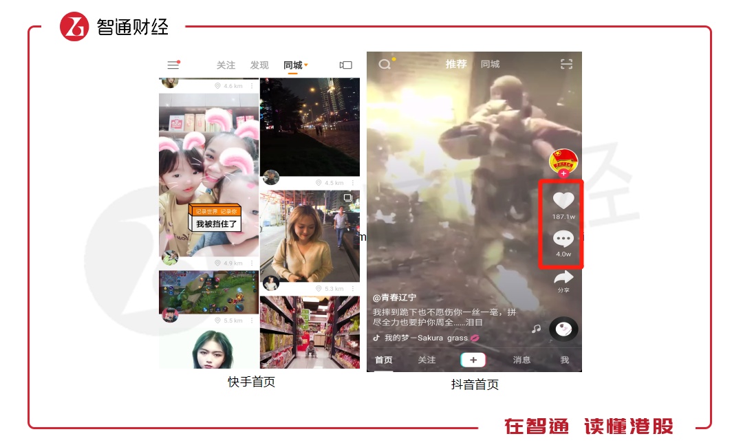图:快手与抖音首页比较