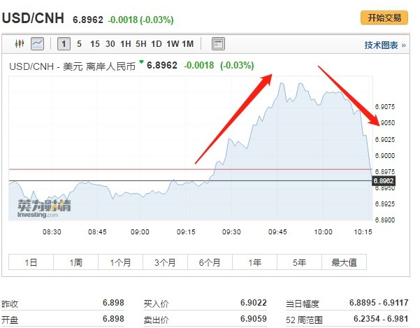 人民币中间价今日大幅上调395点,报6.8976,至10月8日以来最高,升幅创8月28日以来最大。上一交易日中间价6.9371。上个交易日官方收盘价6.8897,上日夜盘收报6.8905。