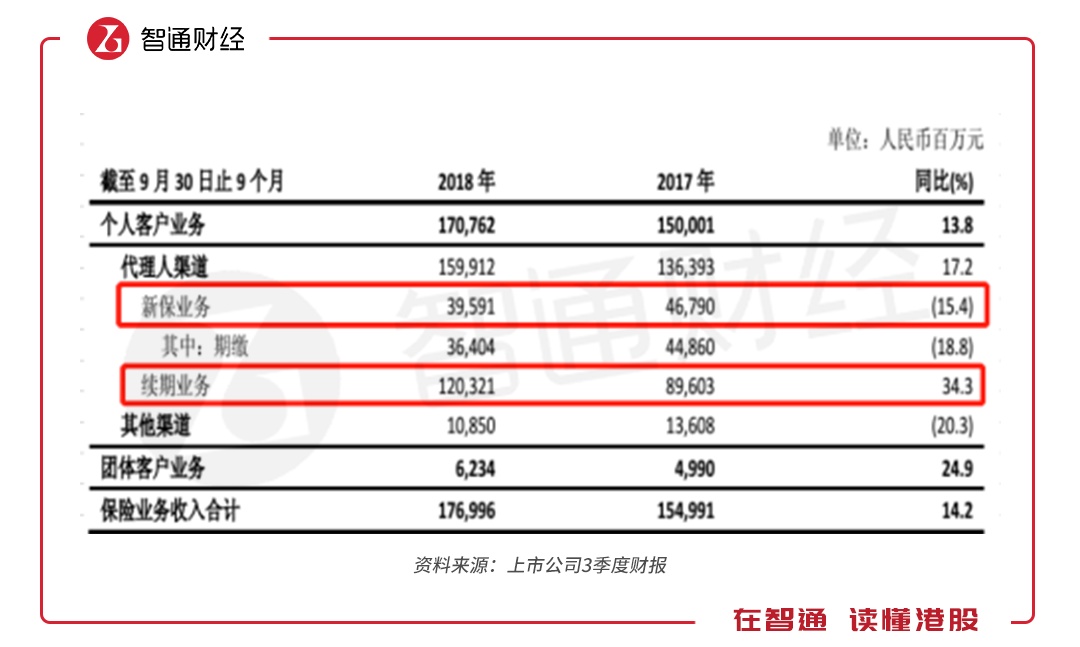智通财经APP认为,关于保费收入,投资者不仅要关注规模增速,还要关注保费收入结构。具体来说,保费收入分为新保业务收入和续期业务收入。保险产品的购买方式分为趸缴(一次性交费)和期缴(多次交费,类似年金支付方式),因此每年保费收入中有很大一部分是往年保险产品的续期保费。