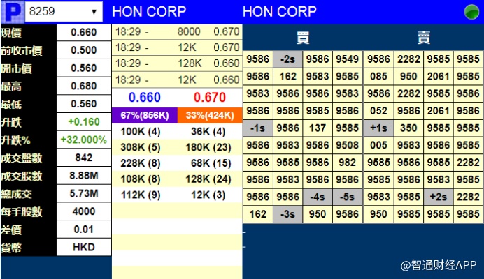 智通财经APP获悉,Hon Corporation Limited (08259)将于11月7日挂牌,上市前夕,据辉立交易场资料显示,暗盘收报0.66元,较招股价0.50元涨0.16元,涨32%。每手4000股,不计手续费,每手赚640元。