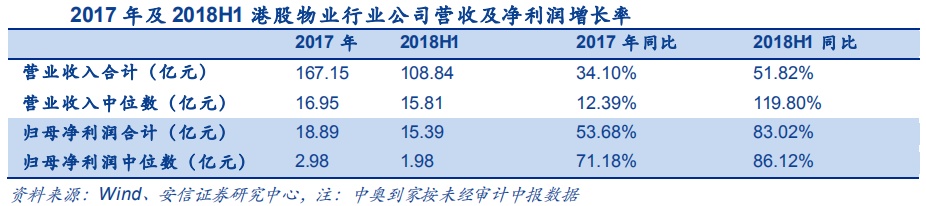 根据安信证券数据显示,2018年中期,港股物业企业的营收和净利润呈现上移趋势,营收15亿元企业、净利润1千万以上企业数量相对增加,上移趋势及上移幅度明显。