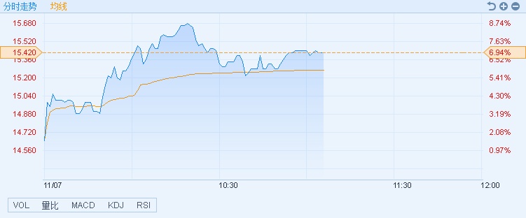 智通财经APP获悉,受A股锂电概念走强影响,赣锋锂业(01772)A、H股价均造好,截至11时03分,涨6.93%,报价15.42港元,成交额5850.15万。