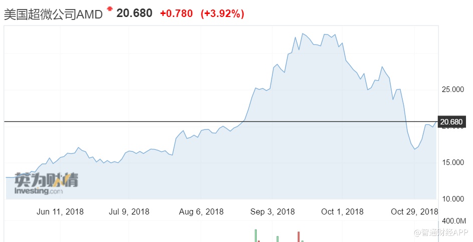受此影响,今年已翻了一番的AMD股价短线上涨8%,收涨3.92%,报20.68美元,创10月24日财报发布以来最高。