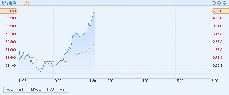 智通财经APP获悉,获瑞信看高至81港元,比亚迪股份(01211)股价持续攀升,截至11时41分,涨5.38%,报价53.85港元,成交额1.31亿。