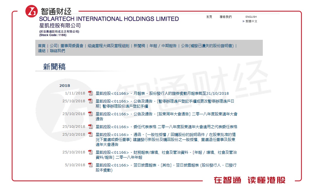 智通财经APP查阅星凯控股官网(http://www.1166hk.com/tc/index.php),发现这是一个连自己公司业务也不介绍的官方网站。新闻稿主要来自港交所的公告链接,并没有暴跌的相关信息。