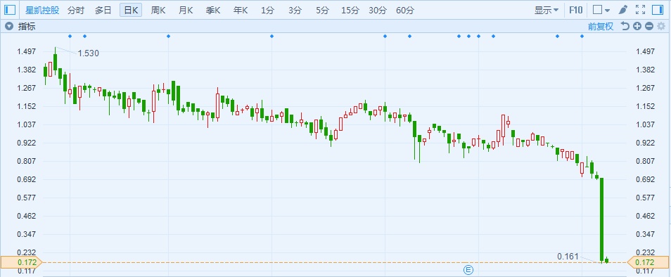 但对于星凯控股此次暴跌,有分析认为:“星凯控股本就是只壳股,只为保留上市地位而活着。但是在暴跌之前,其总市值达16.62亿港元,已经超出壳股市场价的一倍有余。这次暴跌,也是壳价的回归。至于暴跌的导火线,可能是因为股东质押股份惨遭抛售。但是星凯控股有点像香港的仙股,也可能只是大幅‘下炒’吸引小散户抄底博反弹。”