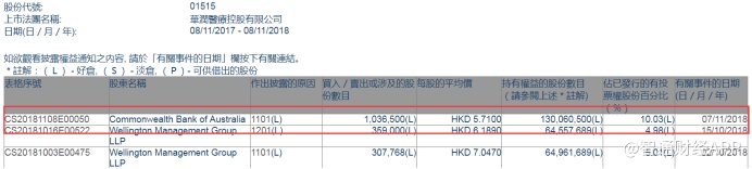 智通财经APP获悉,根据联交所资料显示,澳洲联邦银行于11月7日增持华润医疗(01515)103万股,每股作价5.71港元,总值588.13万港元,最新持股量增至10.03%。