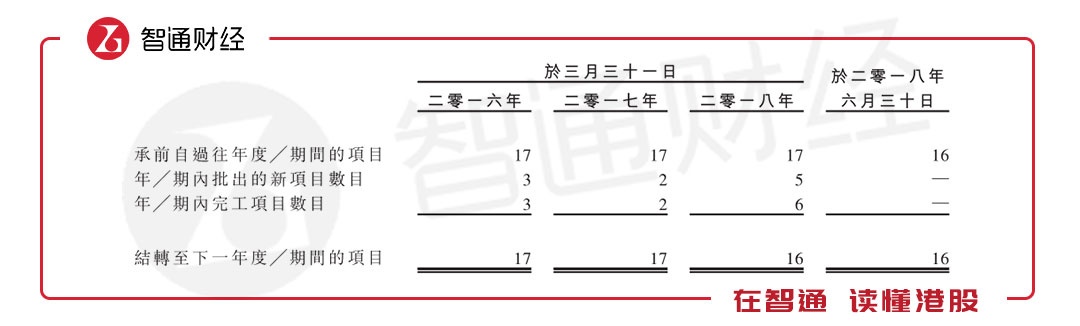 对应记录期间,财裕集团一共有17个、17个、16个重大项目处于积压状态。截至2018年6月30日至三个月,财裕集团有16个项目个重大项目处于积压状态,基本在2019年之后完工。这意味着,在保有项目的基础下,财裕集团2019财年的业绩也有保障。