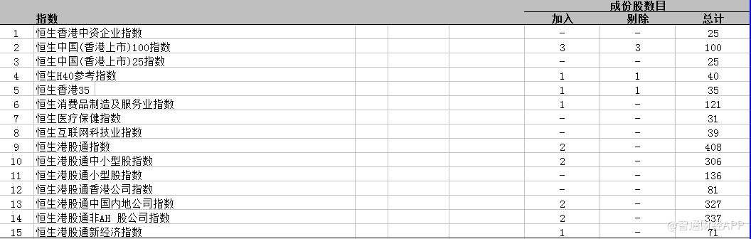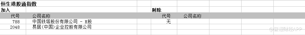 5)恒生港股通指数变动: