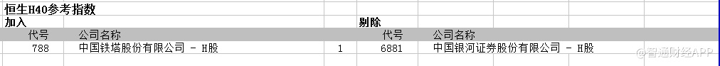 2)恒生H40参考指数变动: