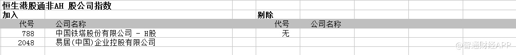 8)恒生港股通非AH股公司指数变动: