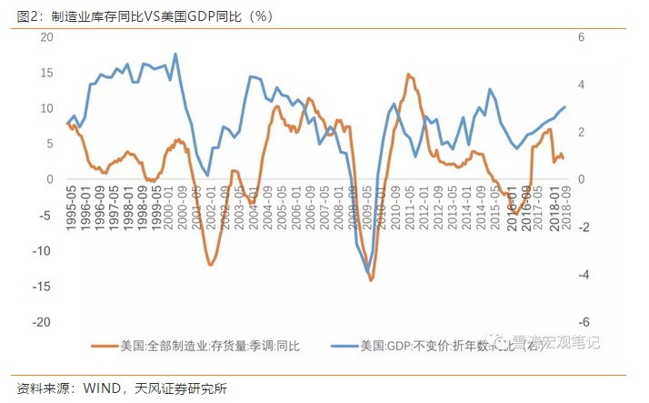 从固定资产投资和消费的领先指标看,明年美国经济增速将回落,结合对周期拐点敏感的库存数据看,这一轮美国商业周期的拐点已初现端倪。对于这一轮美国商业周期何时见顶,此前我们作出判断:“美国经济大致在今年年底到明年年初进入后周期”。