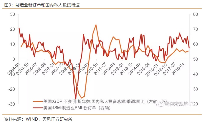 制造业新订单领先私人投资1-2个季度,10月ISM制造业新订单PMI指数57.4,显著低于前值61.8,显示私人投资增速在明年初面临下滑;