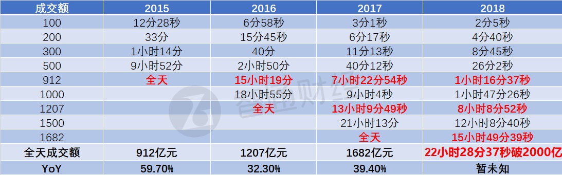 2015-2018年“双11”天猫成交额