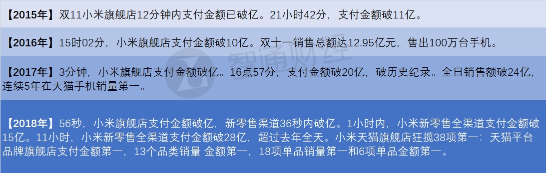 2015-2018年“双11”小米成交额