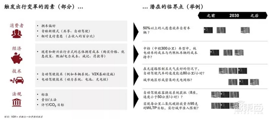 除了消费者、经济和技术的驱动,法律框架、税收政策、交通管制等因素也将对出行变革产生巨大影响。